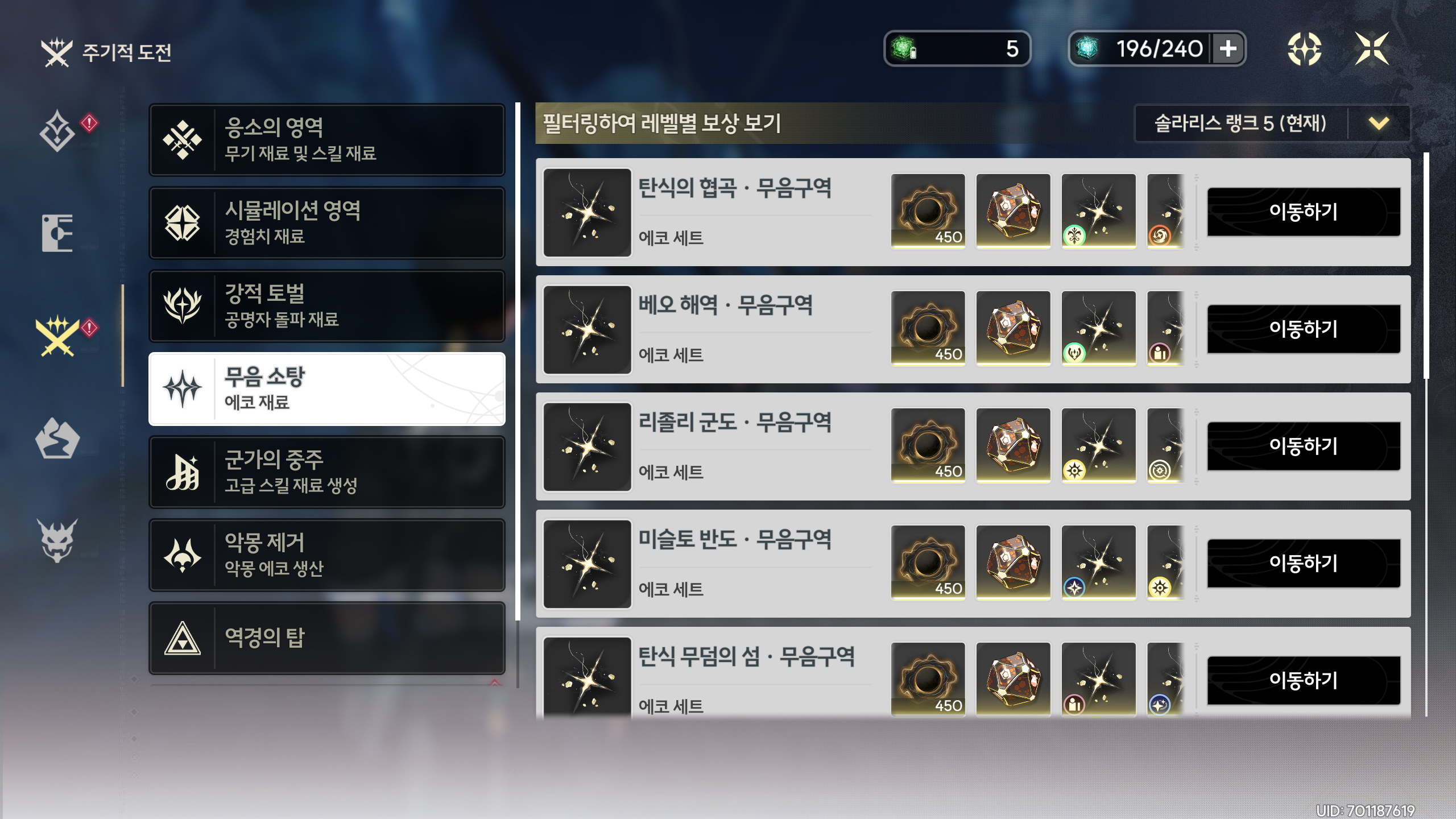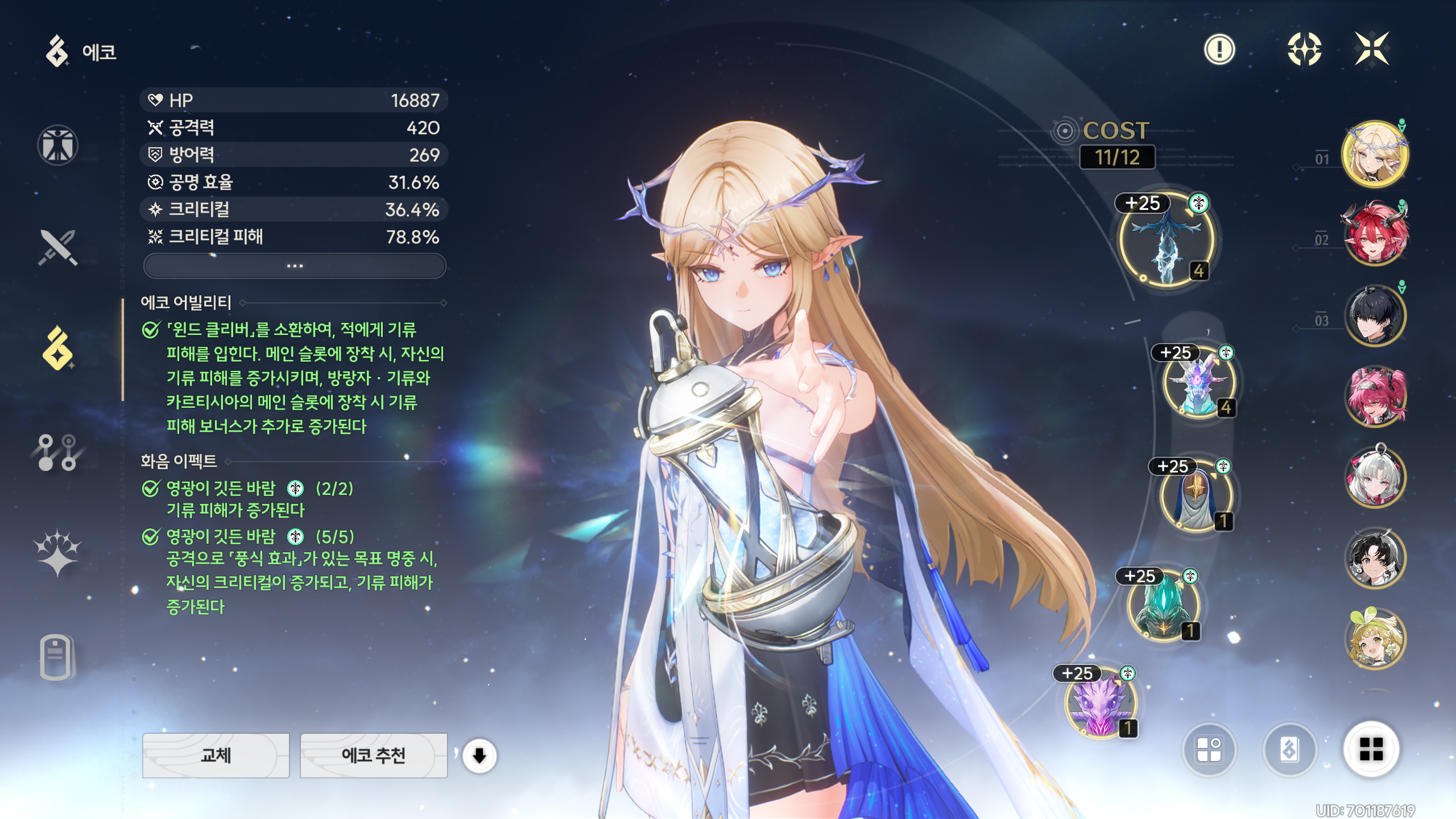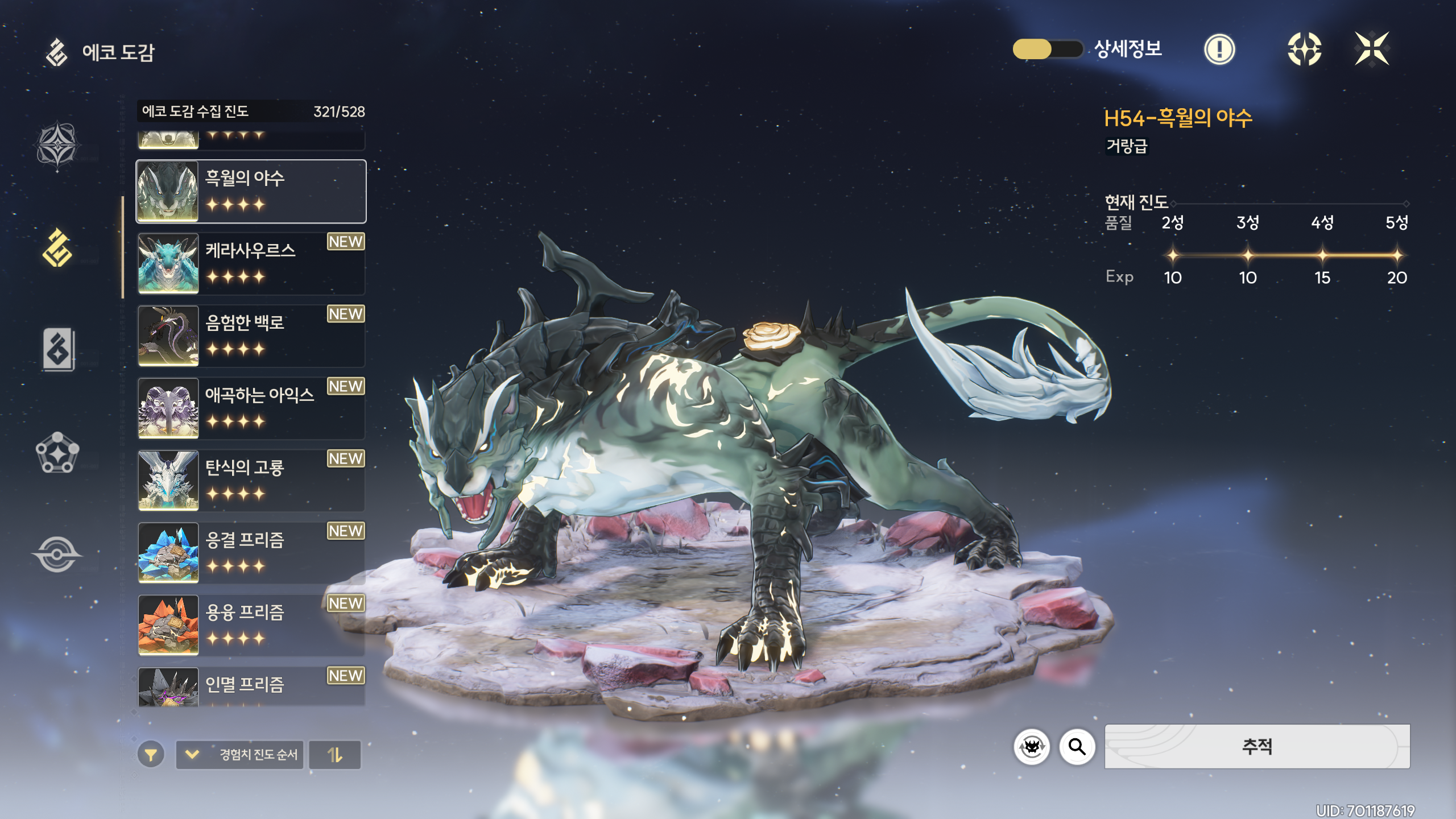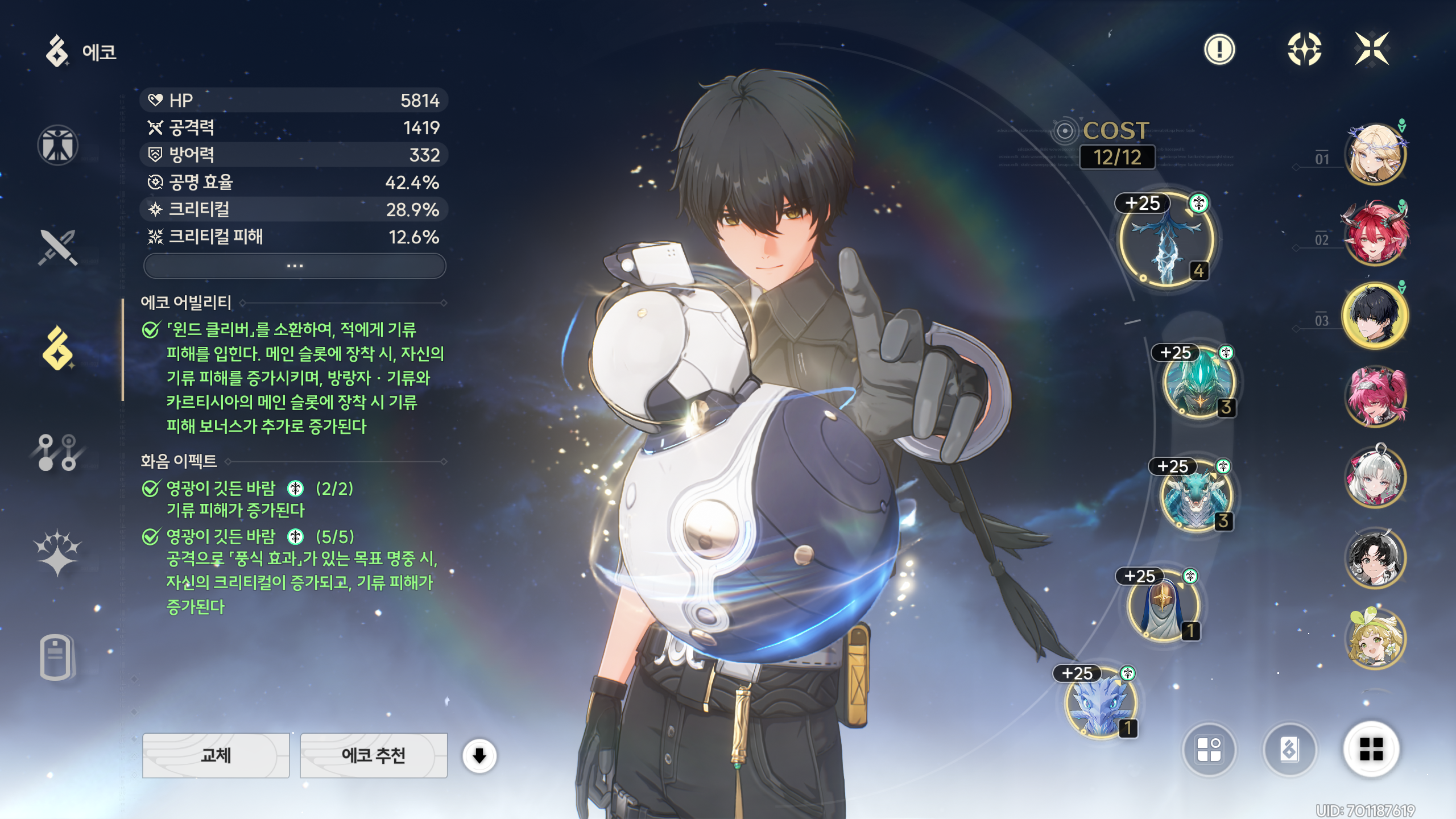 세트를 맞추기 위해 5성 에코를 파밍했다.